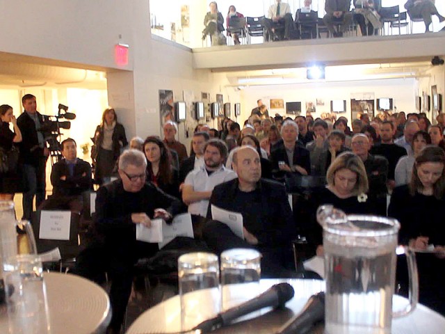 We wish to express our heartfelt thanks to all participants of theses memorable manifestations: Rick Bell, AIA director, for organizing this event in collaboration with the RACC and Lazar Khidekel Society, wonderful speakers: Daniel Libeskind, Maria Kokkori, Jean-Louis Cohen, Anya Bokov and Mark and Roman Khidekel. Regina Khidekel was a moderator and made slide show presentation about Lazar Khidekel life and work. This role in St. Petersburg took Margarita Shtiglits, one of organizers of the event along with the President of the Union of Architects, Oleg Romanov and architect Raphael Dayanov. The exhibition opening and round table discussion gathered together former students of Lazar Khidekel to share memories of a Teacher and a deep understanding of his role in history of art and architecture. According to tradition, celebration was continued with a festive banquet.